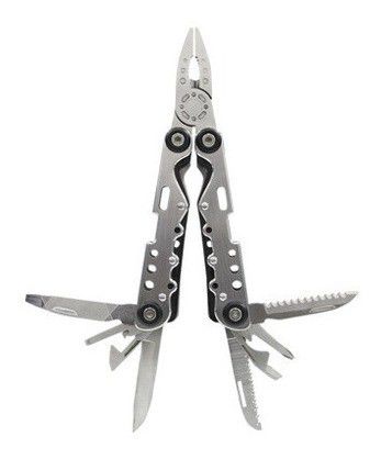 - Possui alicate com cortador de fio, lâmina. lima de dois lados, abridor de latas, chave de fenda pequena, serra dupla, serra simples, chave phillips, abridor de garrafas e abridor de lacre.